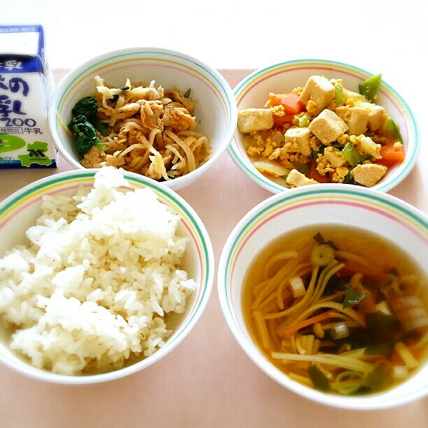 ようこそ桜尾小学校ランチルームへ。 今日もおいしい給食ですよ!!!
