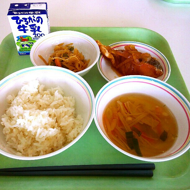 ようこそ桜尾小学校ランチルームへ。 今日もおいしい給食ですよ!!!