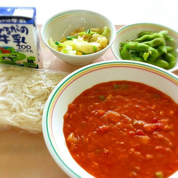 ようこそ桜尾小学校ランチルームへ。 今日もおいしい給食ですよ!!!