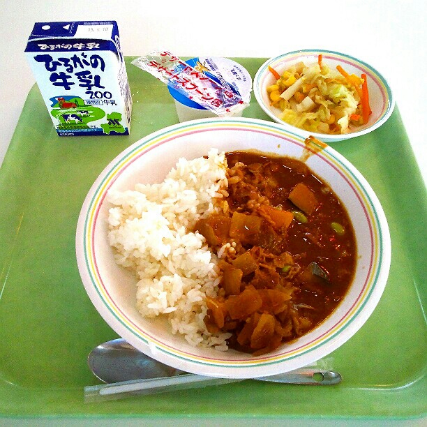 ようこそ桜尾小学校ランチルームへ。 今日もおいしい給食ですよ!!!