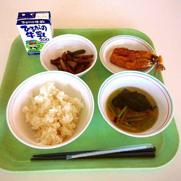 ようこそ桜尾小学校ランチルームへ。 今日もおいしい給食ですよ!!!