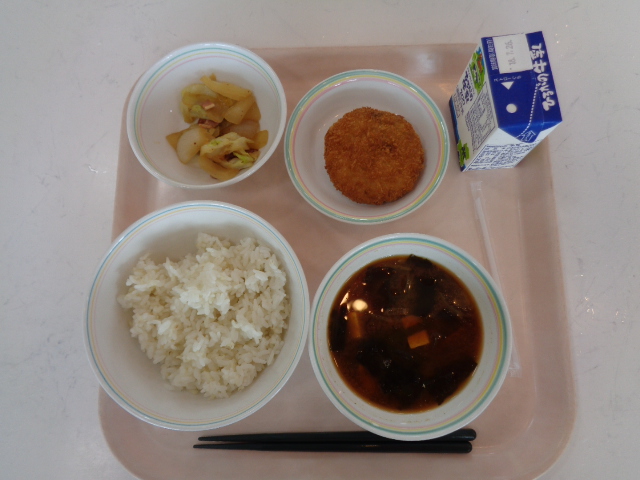 きょうはゆかりごはんです。ゆかりごはんは、しその葉を粉にしたものを、ふりかけの会社が名前をつけたものです。ゆかりごはんの始まりは1970年頃で、今から48年前になります。最初のころは、このきれいな紫色を出すことにとても苦労したそうです。ゆかりごはんの「ゆかり」と「紫色のしその葉」は何の関係もないように見えますが、昔の和歌の中に、「縁のあるもの、ゆかりのあるもの」として紫草がうたわれていることから、紫といば縁、と連想するようになったといわれます。しっかりと食べて元気に過ごしましょう。