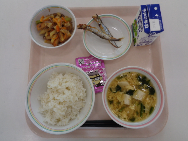 今日は、いい歯の日の献立です。山県市では、毎月8日のいい歯の日には、かみごたえのある食品や、骨を丈夫にするカルシウムなどの栄養素を多く含む食品をたくさん取り入れています。