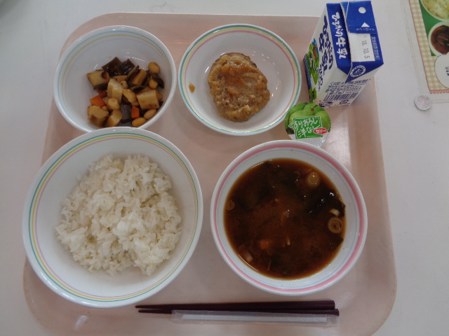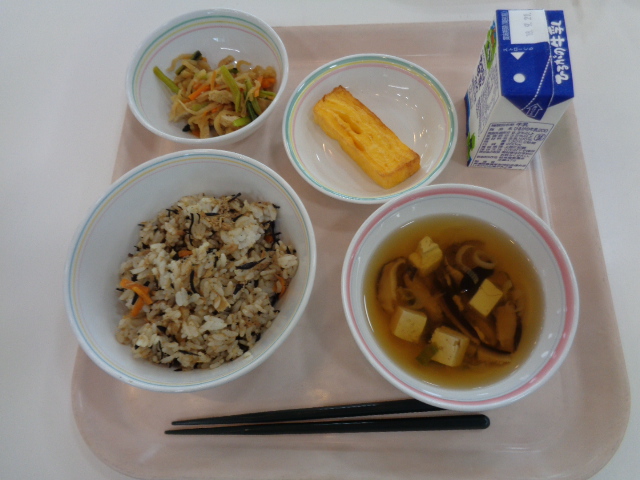 今日は、ツナ、ひじき、にんじん、油揚げの入った混ぜご飯です。味わってくださいね。
