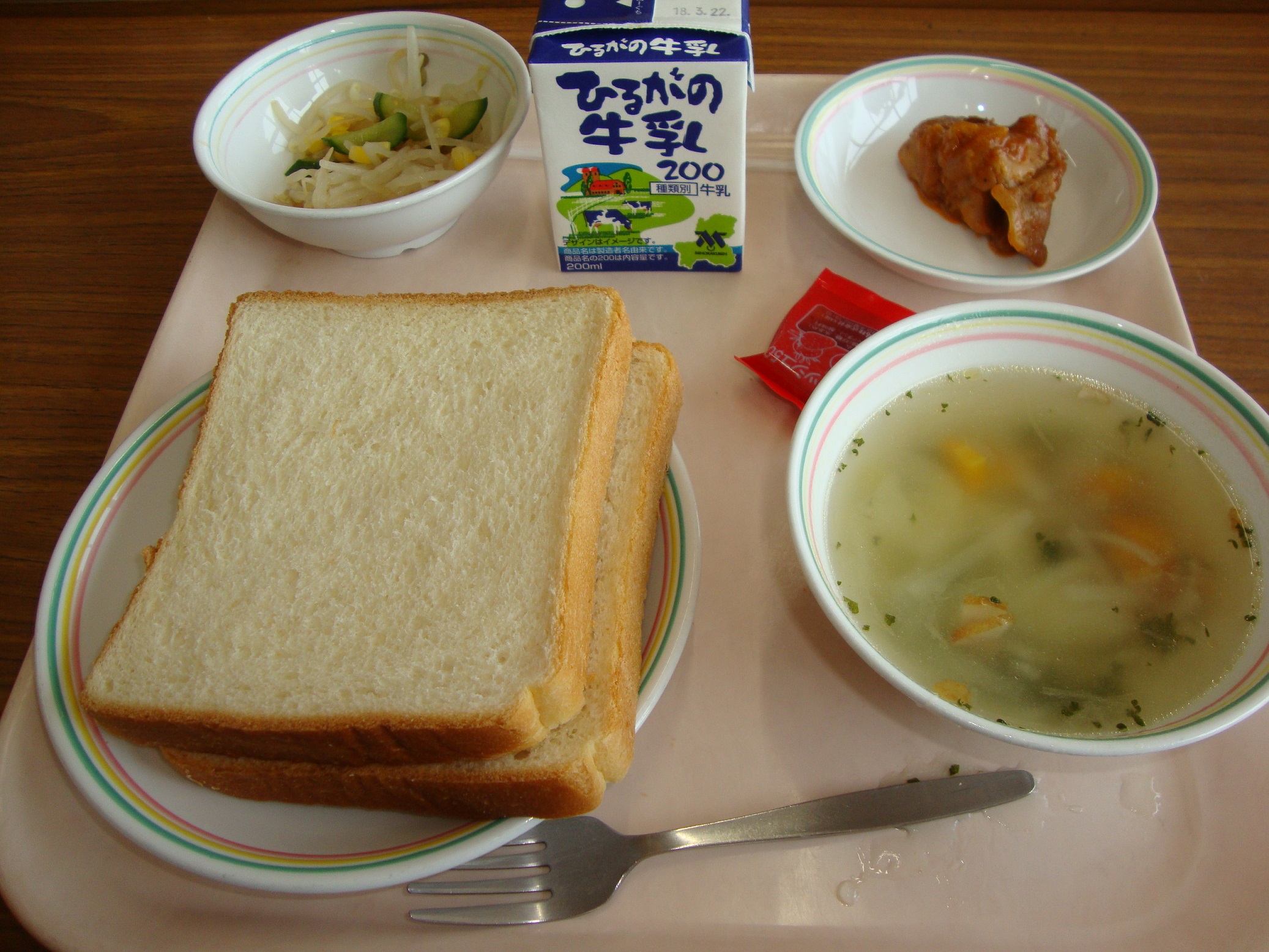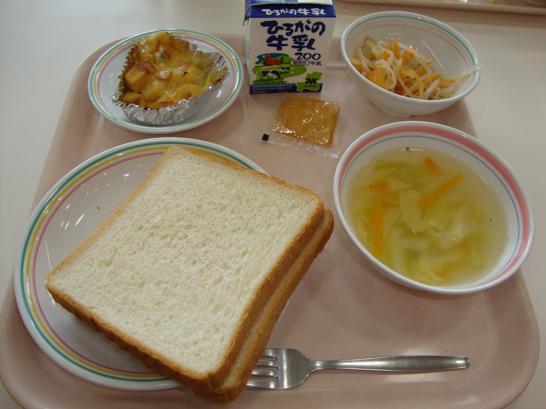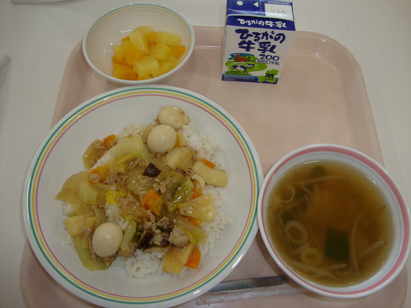 入学、進級でまだ緊張している人も多いと思います。そんなみなさんが食べやすいように、今日は人気メニュー「カレーライス」の給食です。