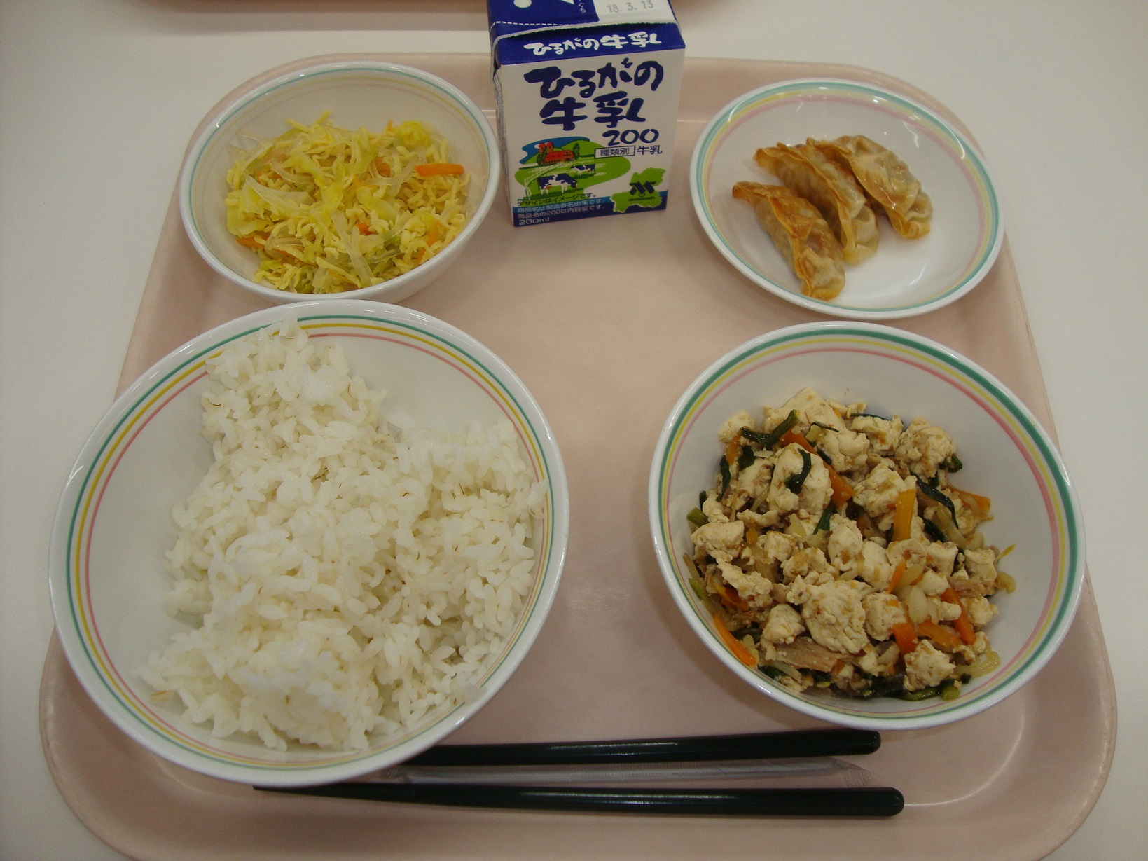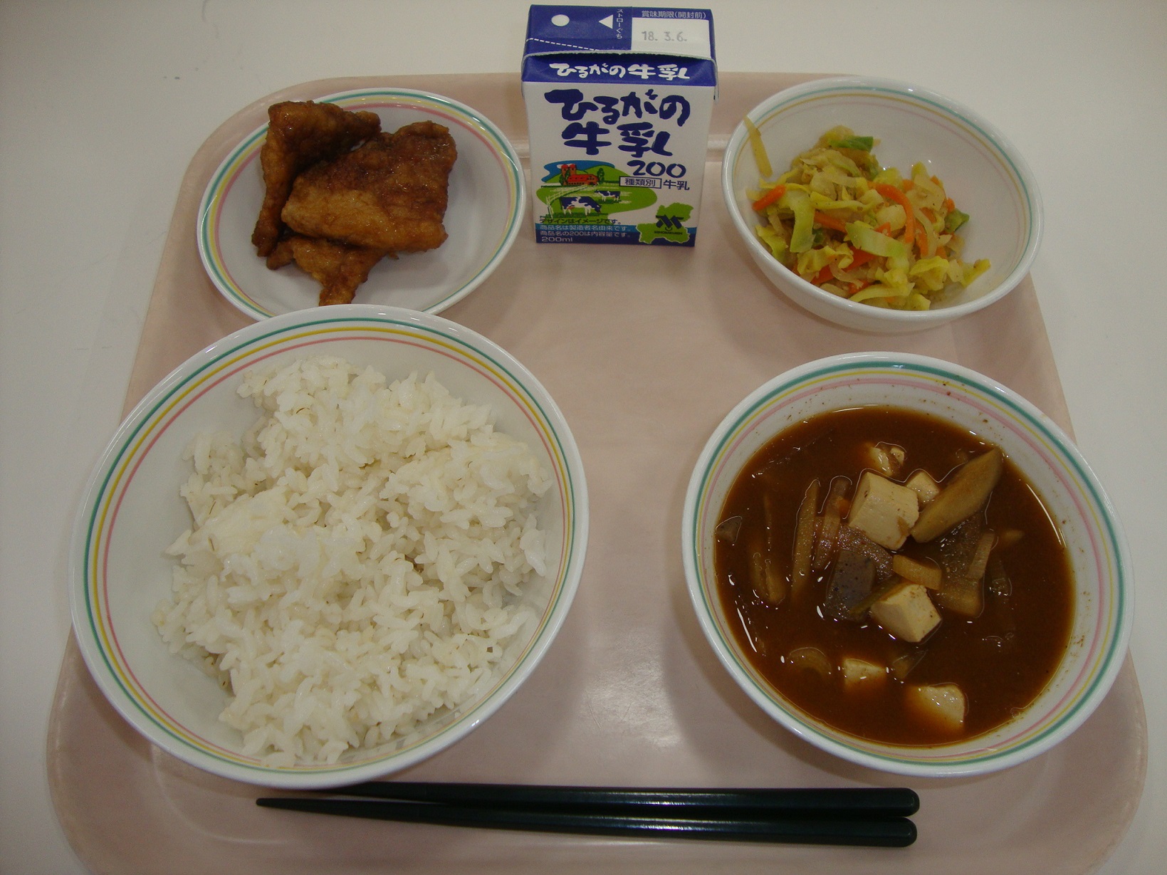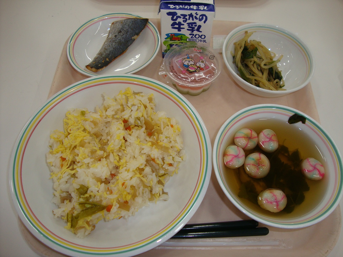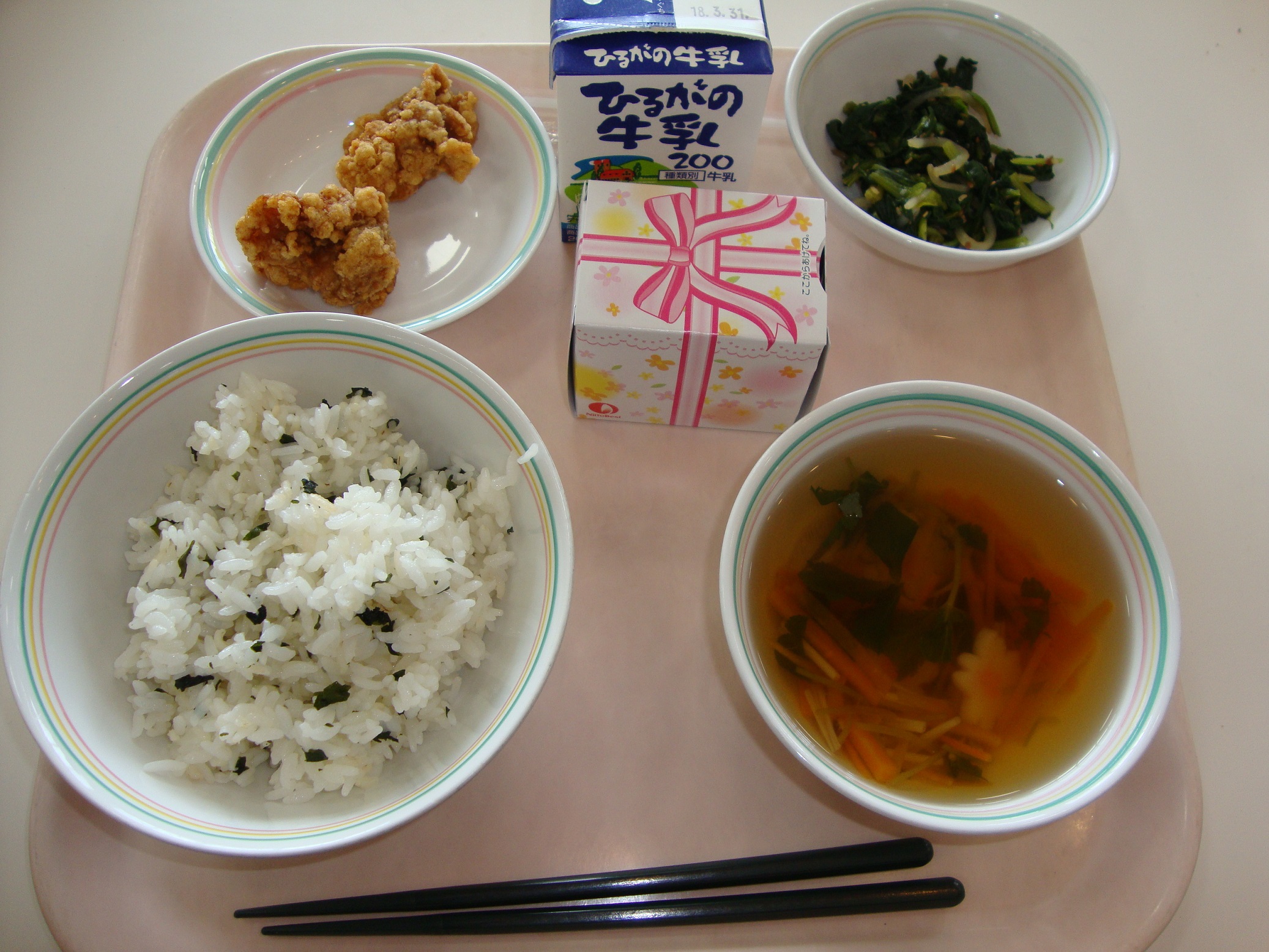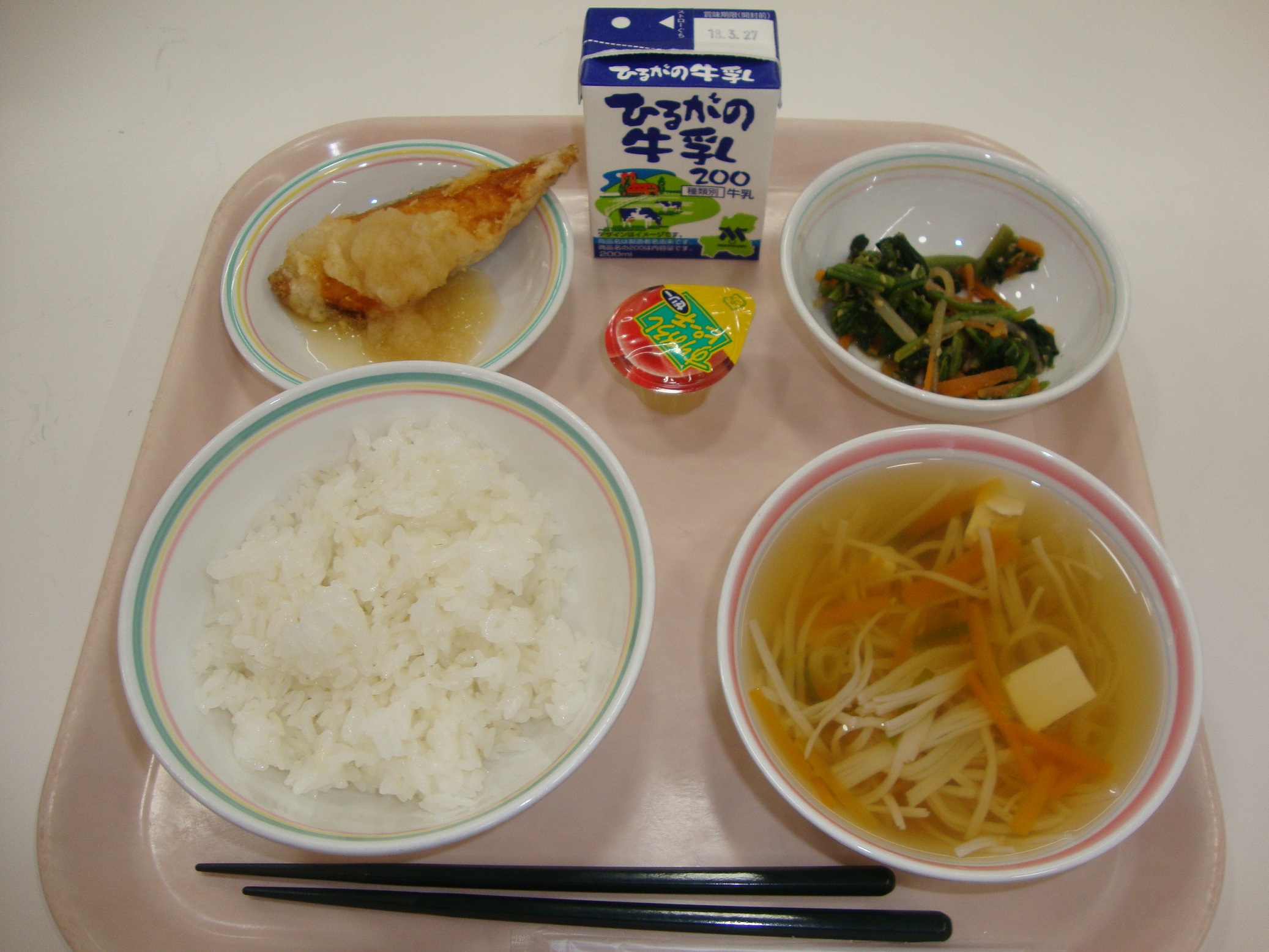 明日は3月3日、ひなまつりです。1日早いのですが、今日はひなまつりの献立です。