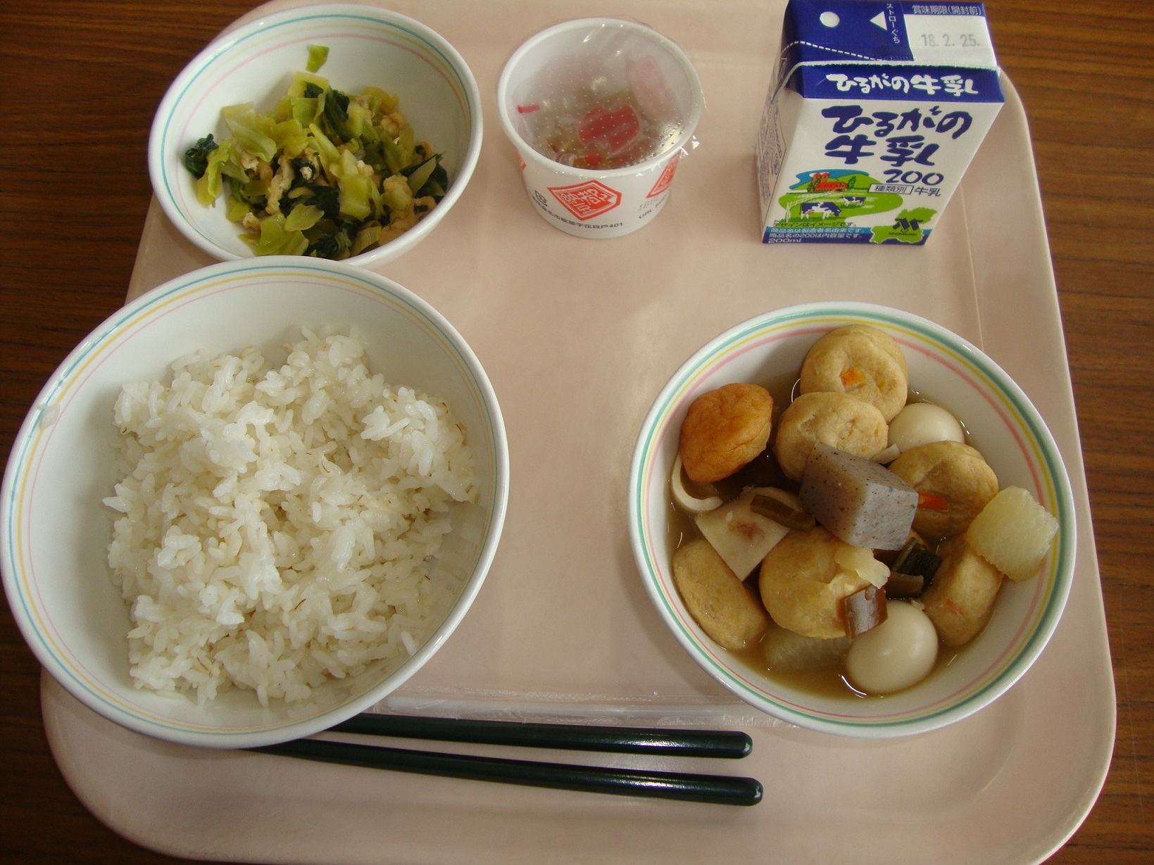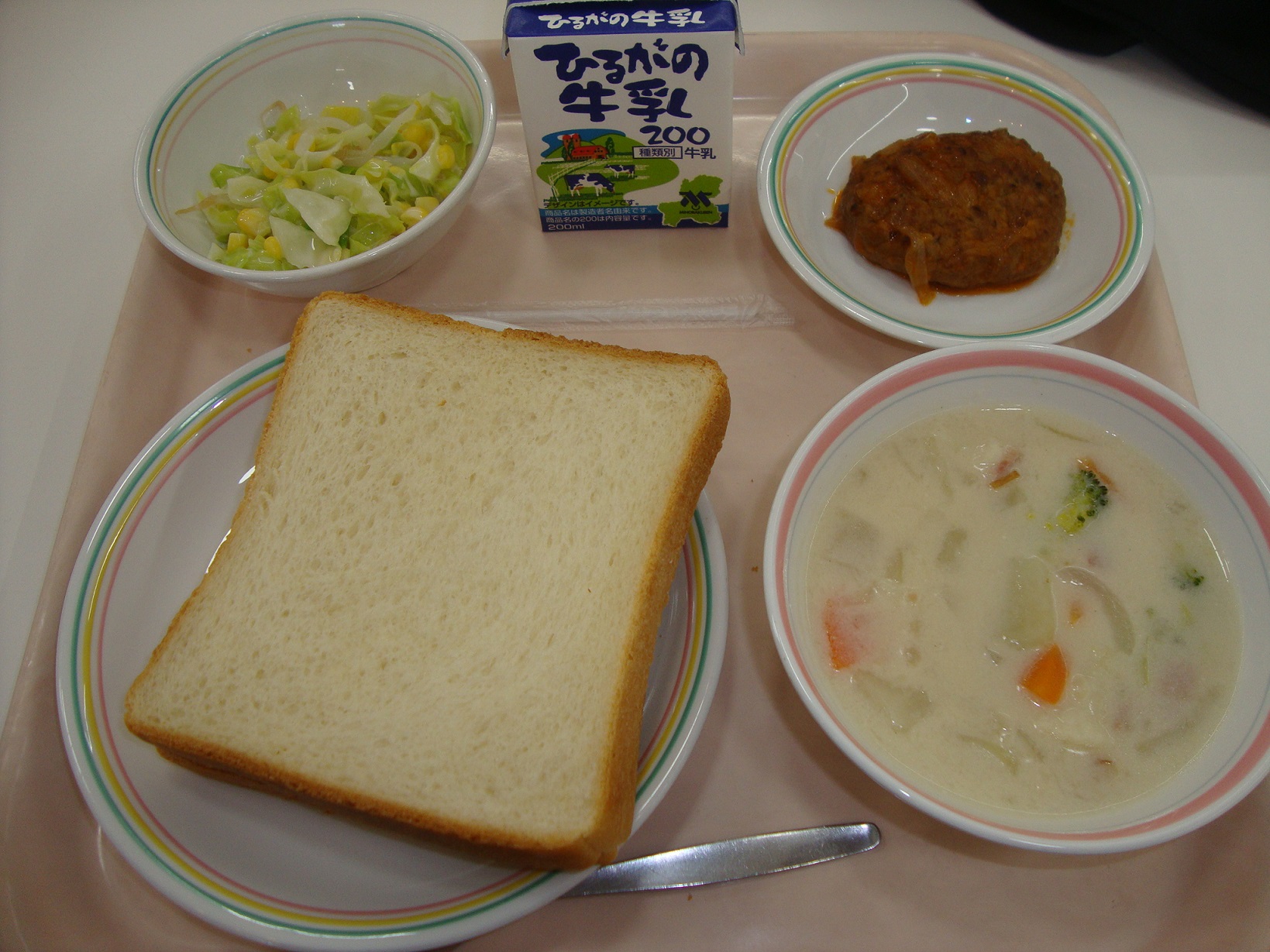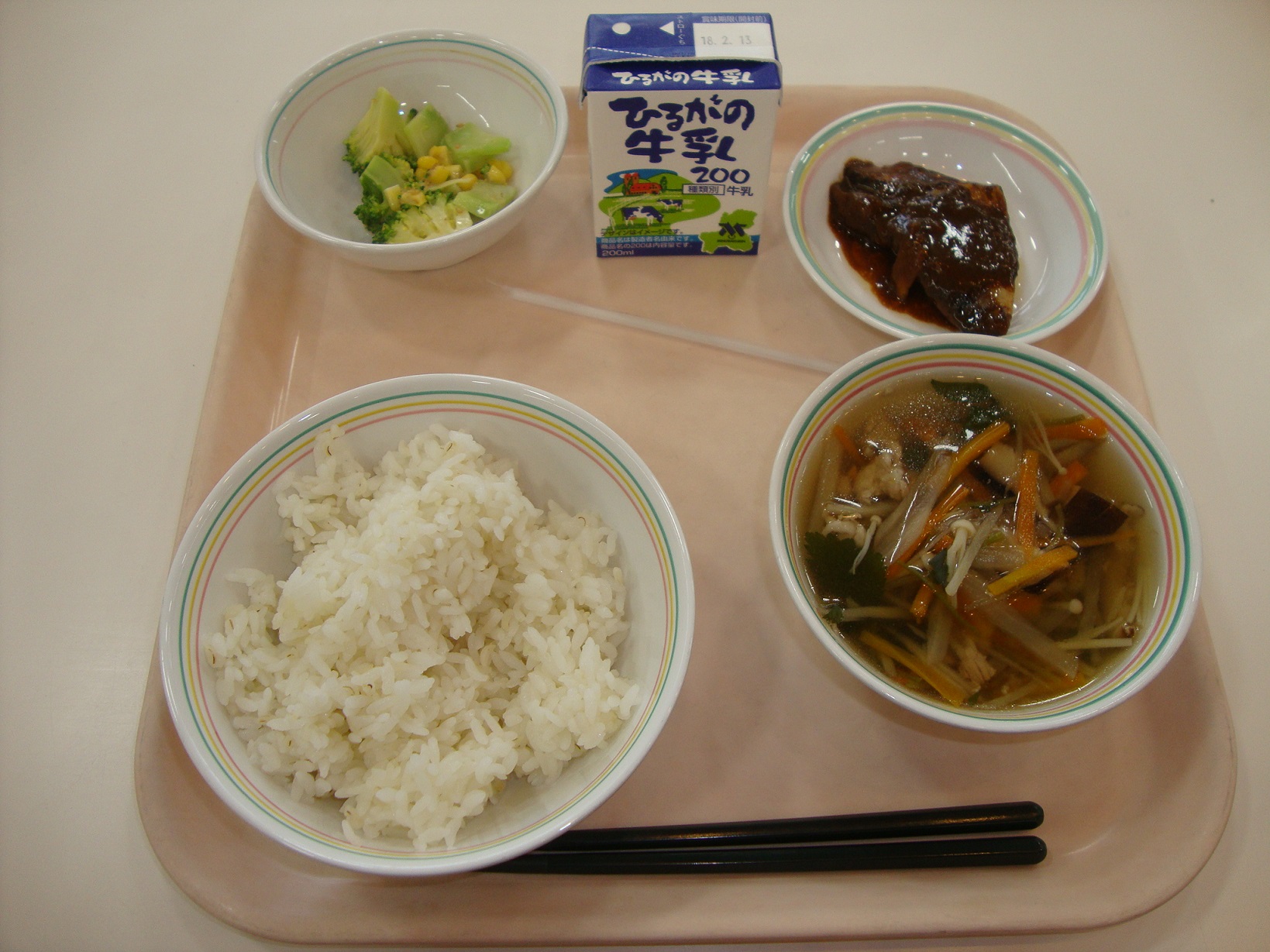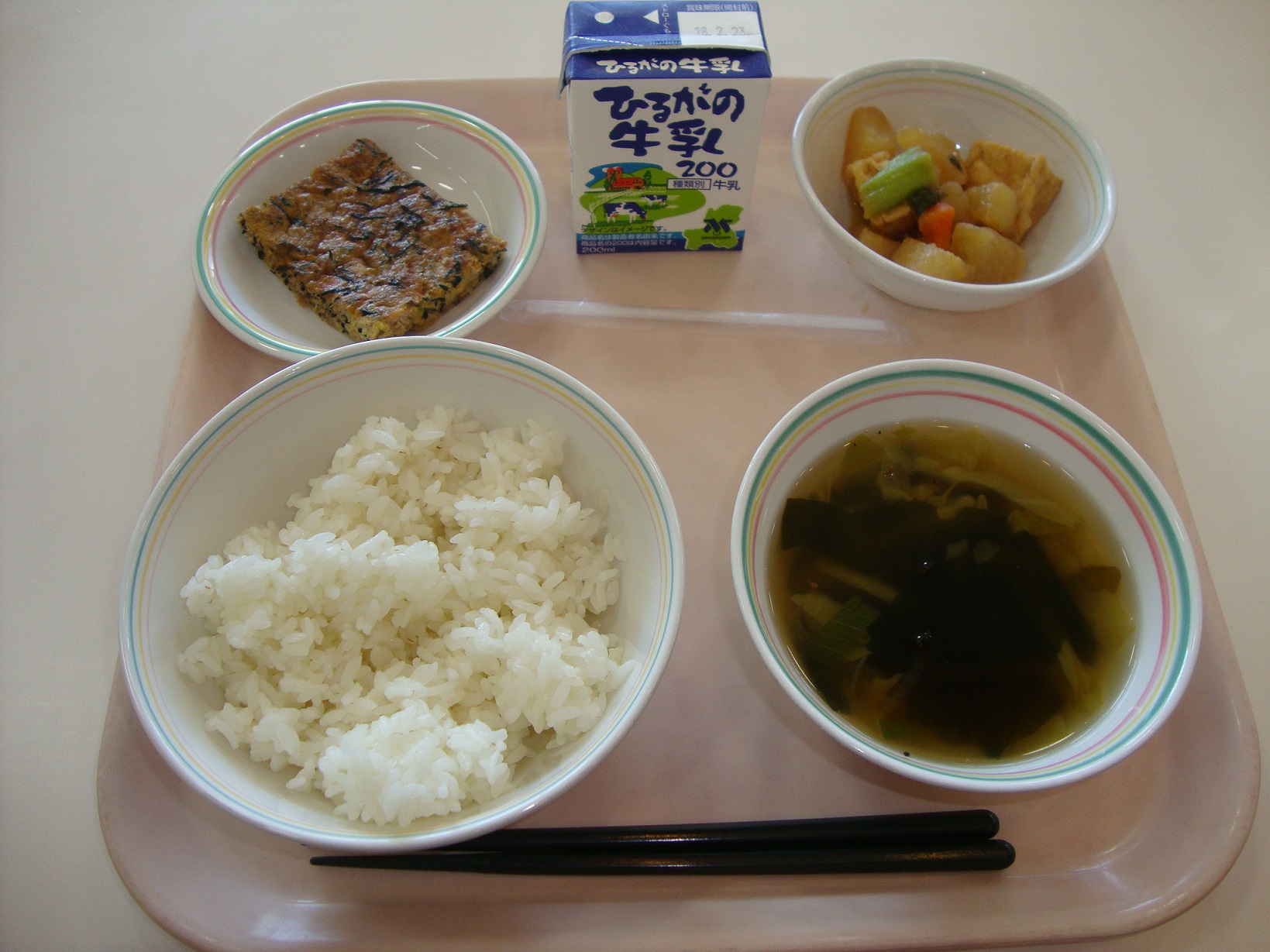 みなさんは毎日朝ごはんを食べていますか?アンケートをとると、ほとんどの人が朝ごはんを食べていますが、食べているものの栄養バランスが、かたよっている人も多くいるようです。今日の給食のように、主食となるごはんやパン、主菜となるウインナーや卵焼き、副菜となるサラダやきんぴらなどの野菜のおかずに、みそ汁やスープなどの汁物を組み合わせて、栄養バランスを整えましょう。寒くて朝、布団から起きられない、という人もいるかと思いますが、しっかり朝ごはんを食べることでスムーズに体温が上がるので、早起きをしてしっかり朝ごはんを食べると良いですよ。ぜひ、おうちの人にも伝えてくださいね。