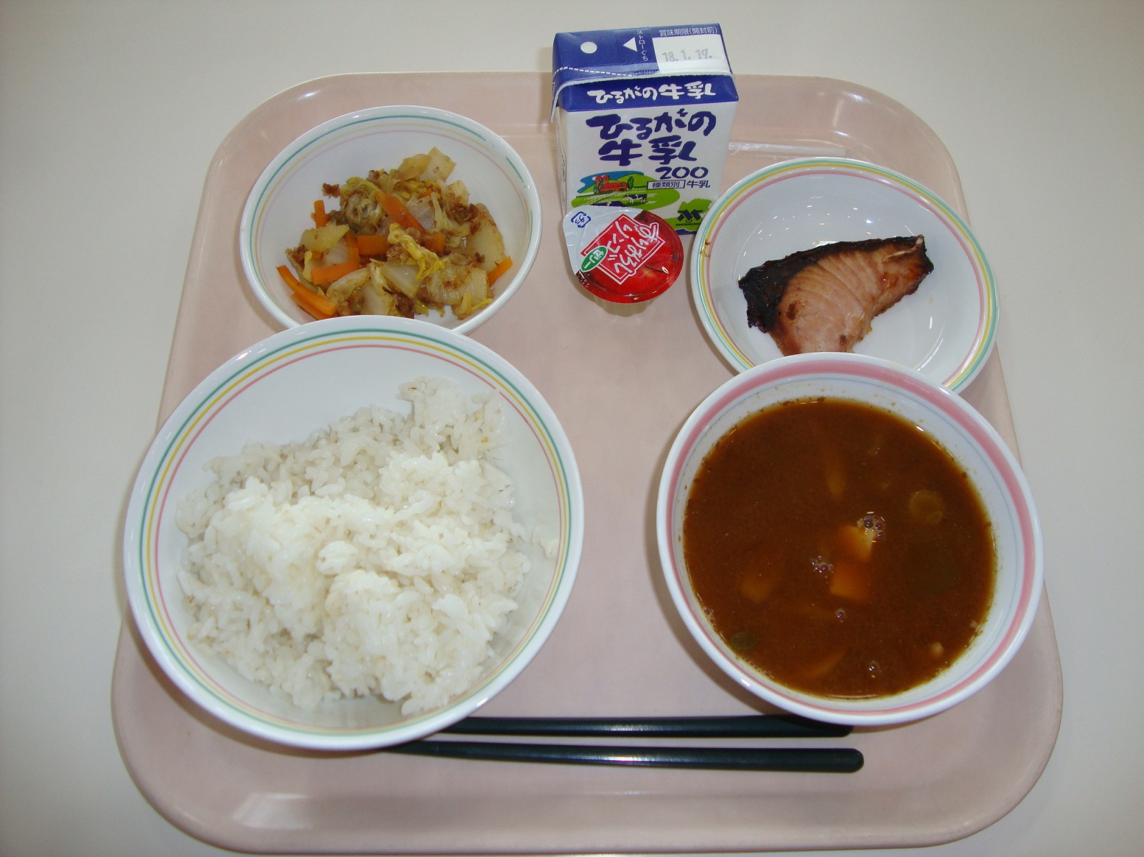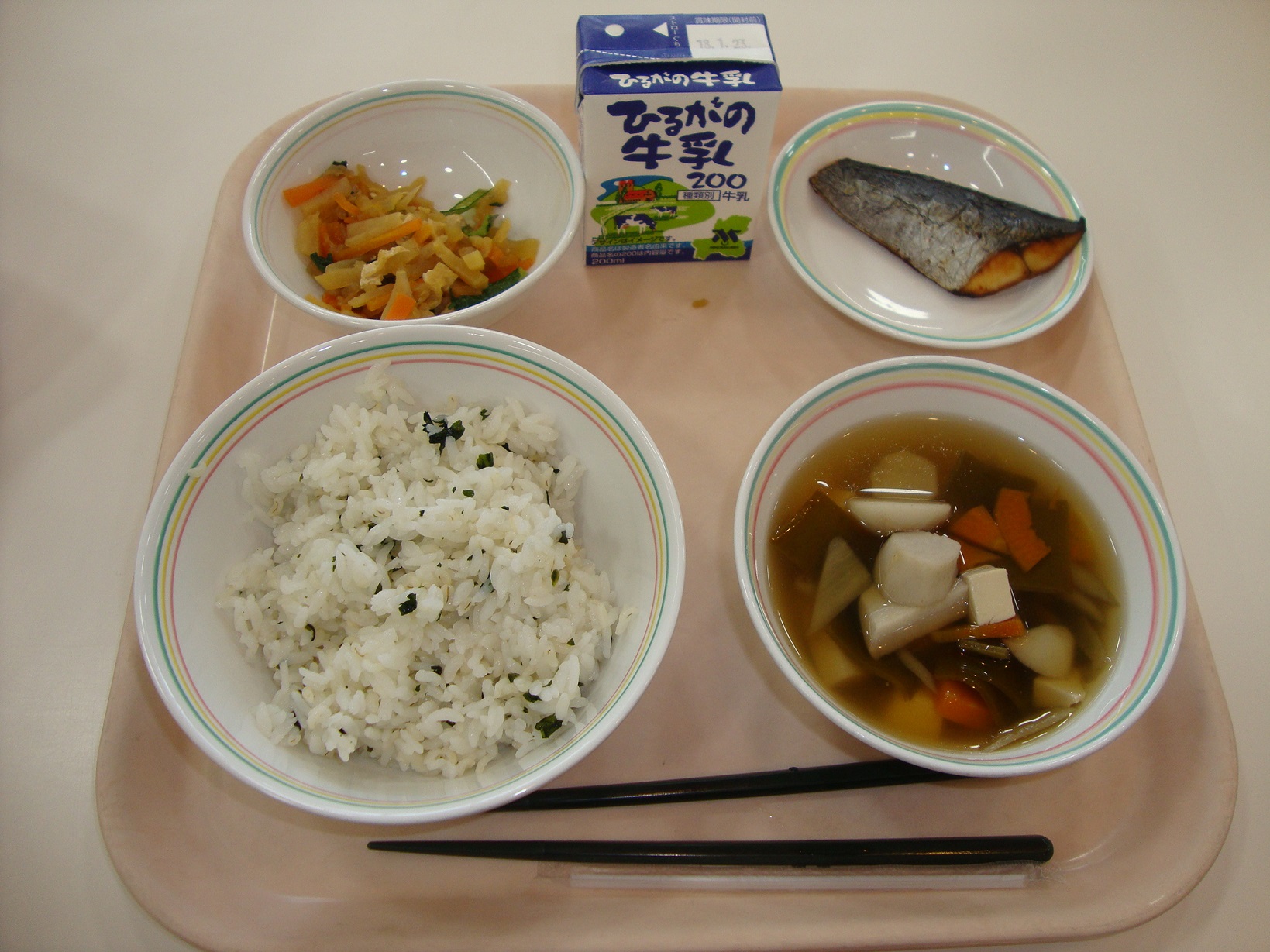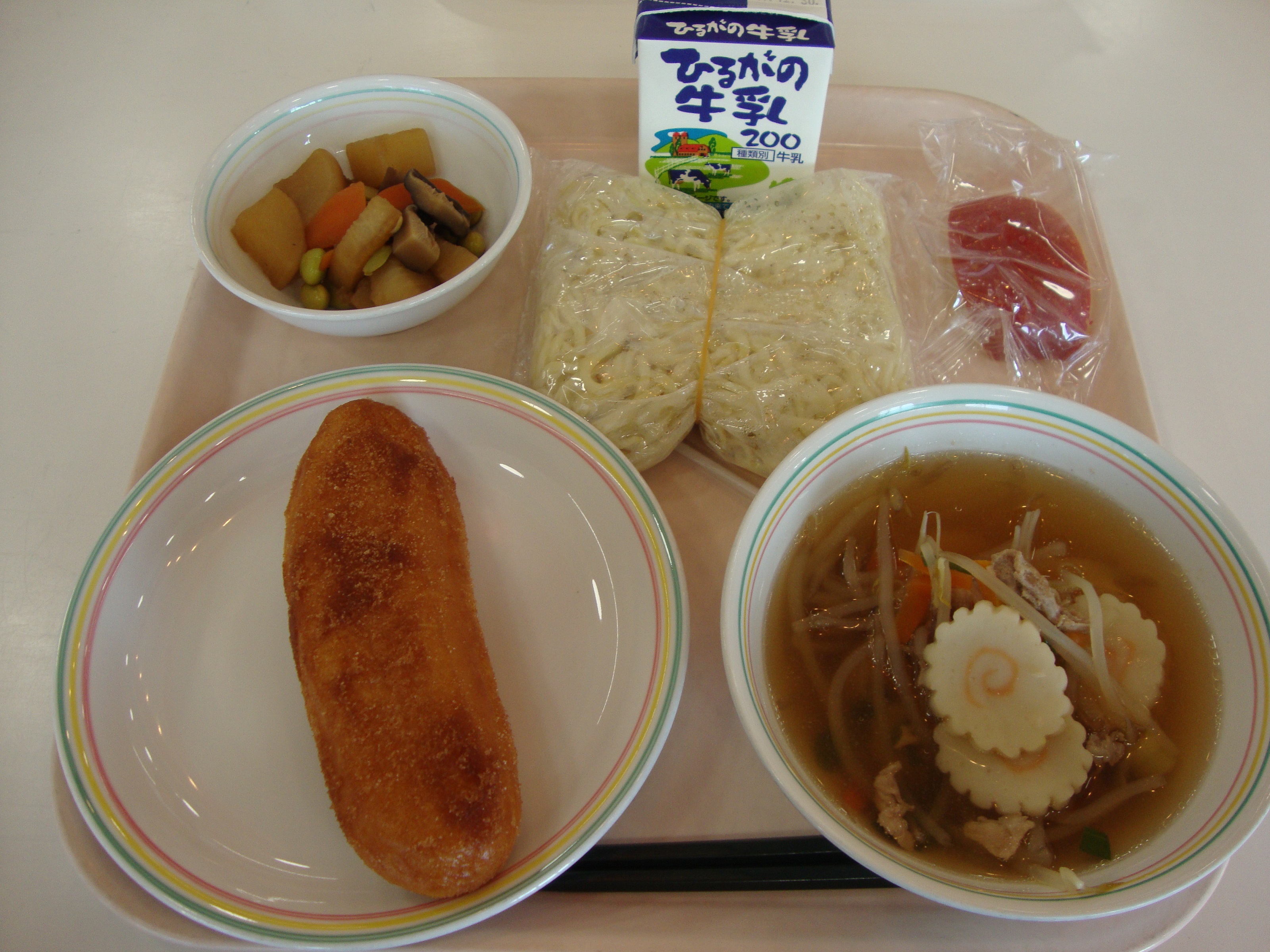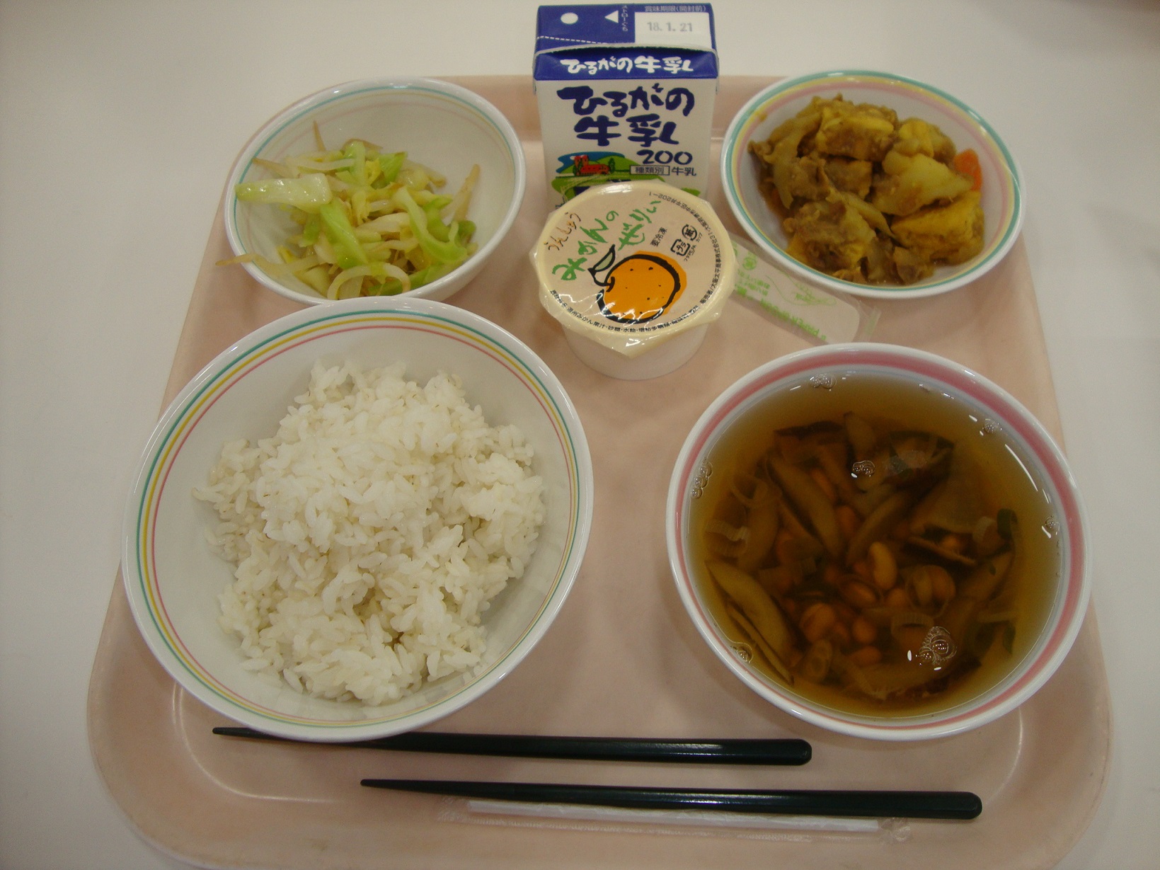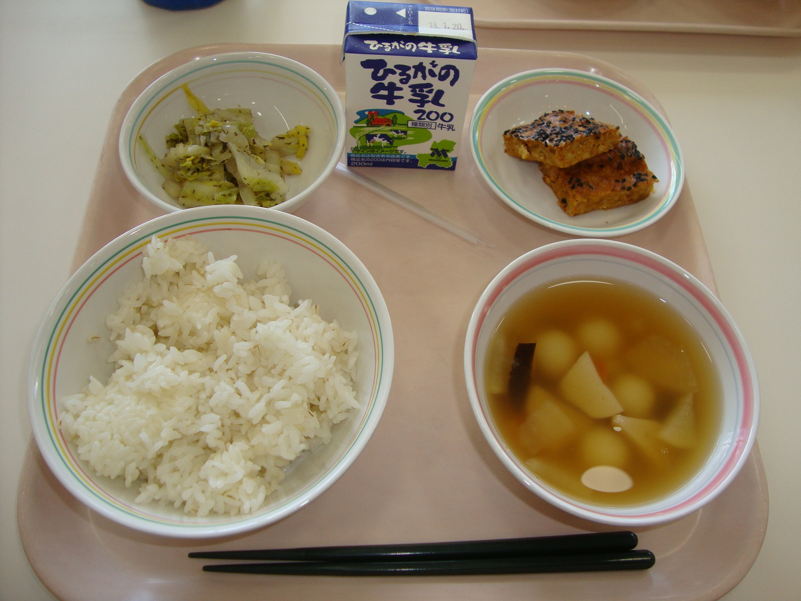 3学期の給食が始まりました。みなさん、充実した冬休みを過ごせましたか。風邪をひいたりインフルエンザにかからないように、バランスの良い食事や、手洗い、うがい、規則正しい生活リズムになるように気を付けて、3学期も元気に過ごしましょう。