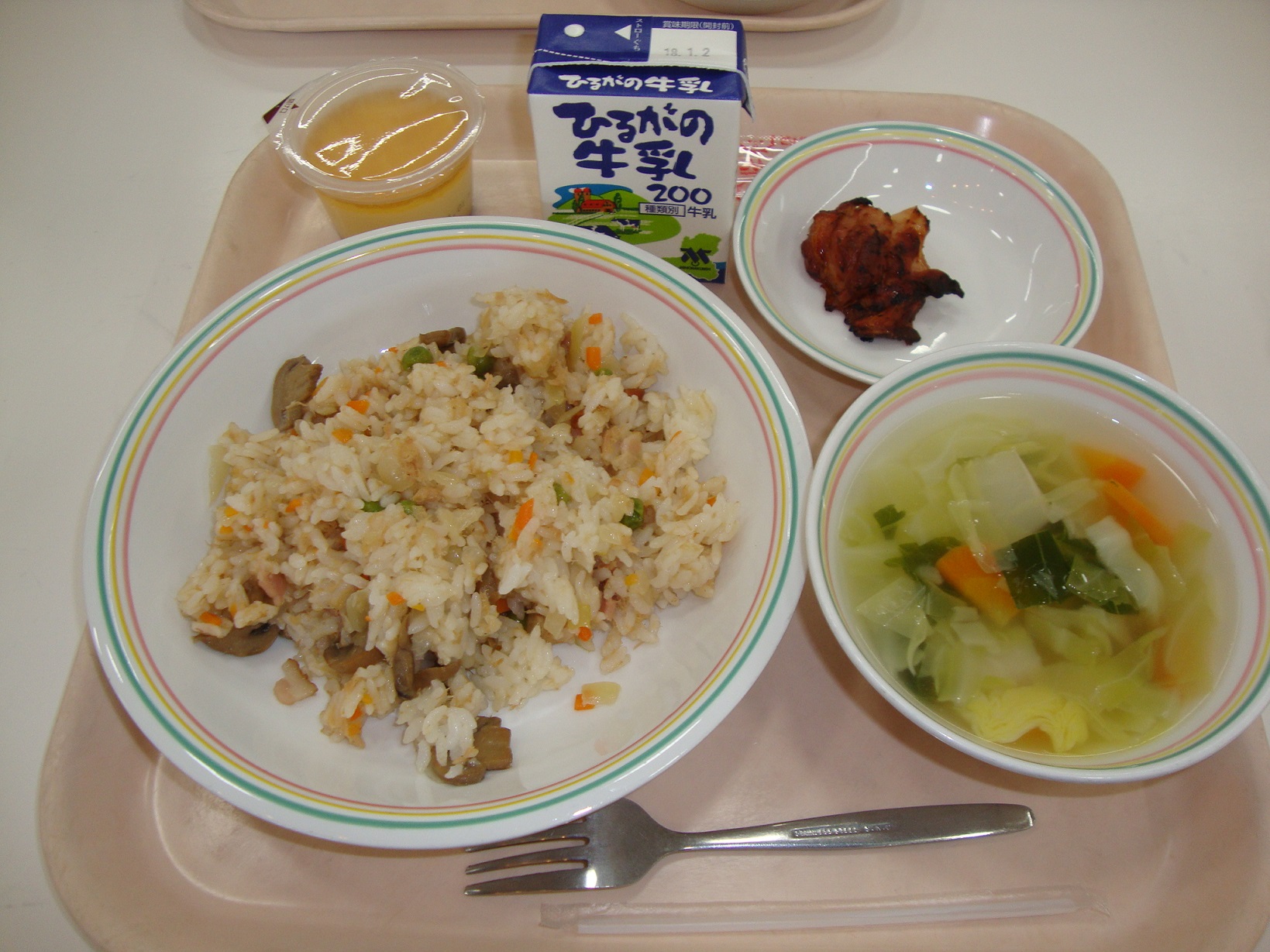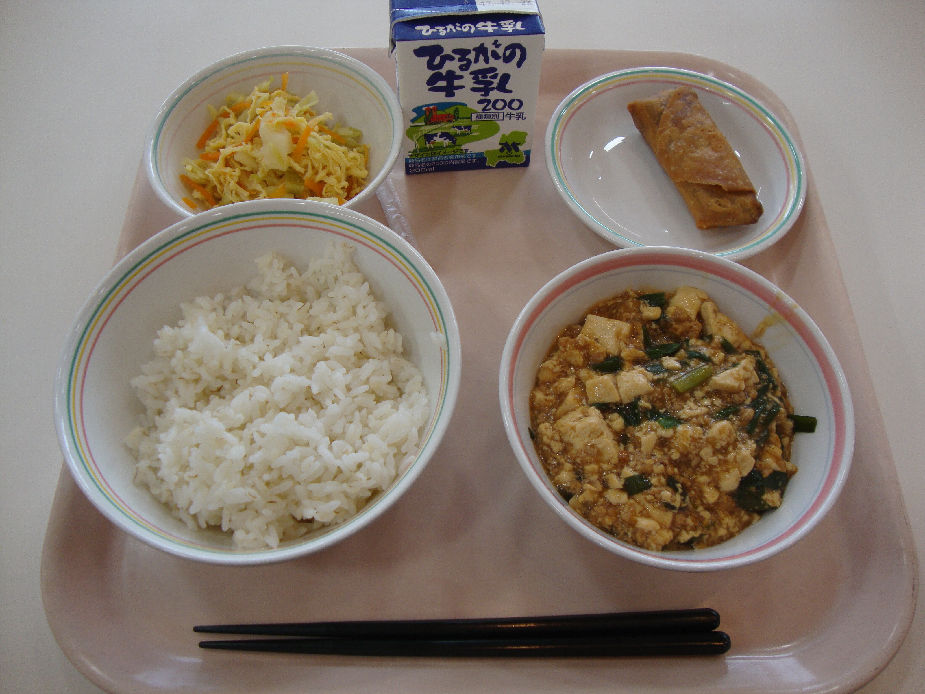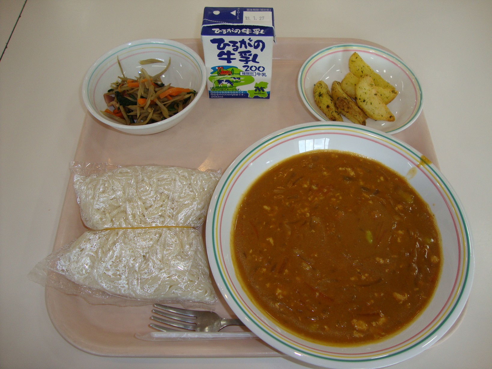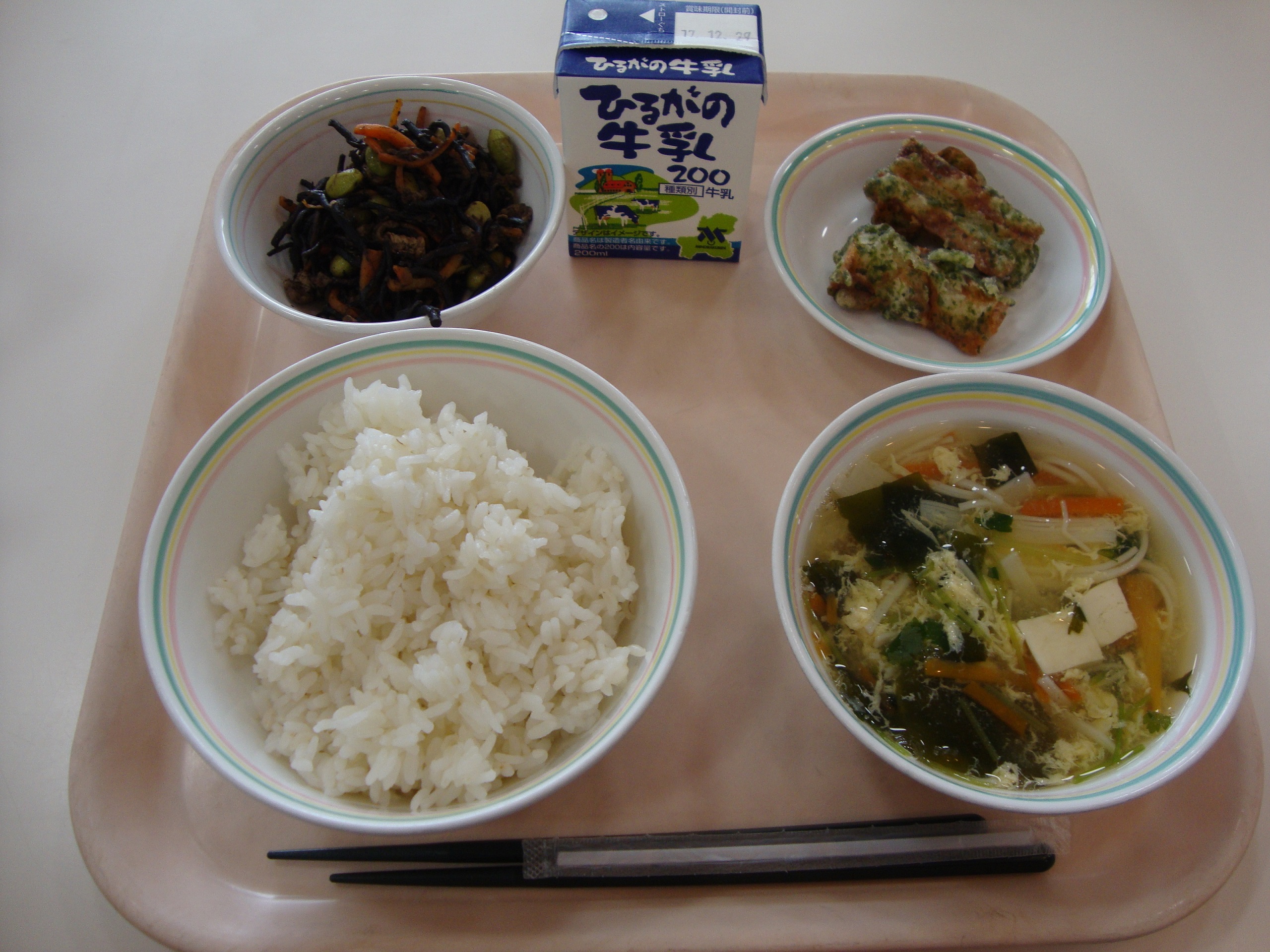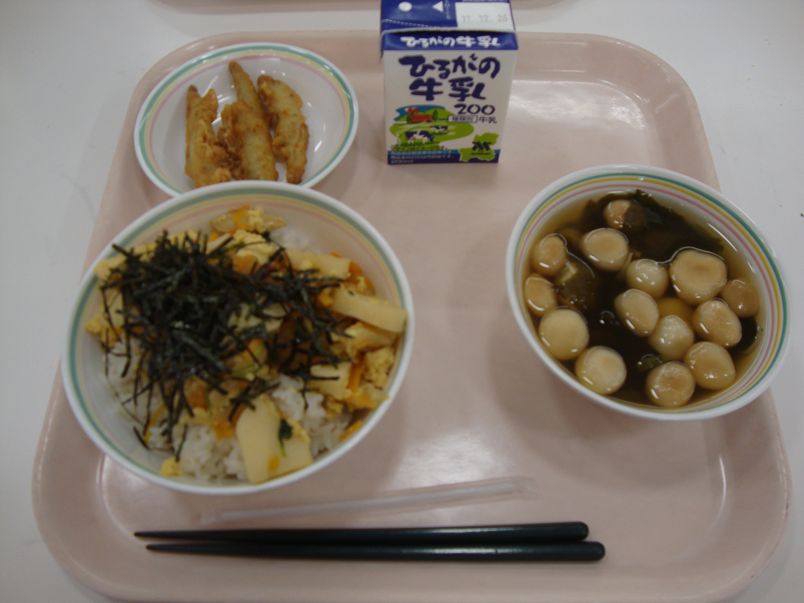 3学期の給食が始まりました。みなさん、充実した冬休みを過ごせましたか。風邪をひいたりインフルエンザにかからないように、バランスの良い食事や、手洗い、うがい、規則正しい生活リズムになるように気を付けて、3学期も元気に過ごしましょう。