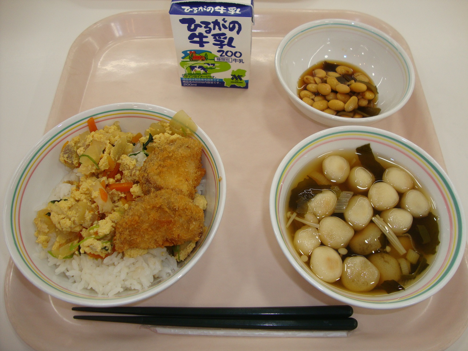 今日の地域の食材は、大豆、人参です。
