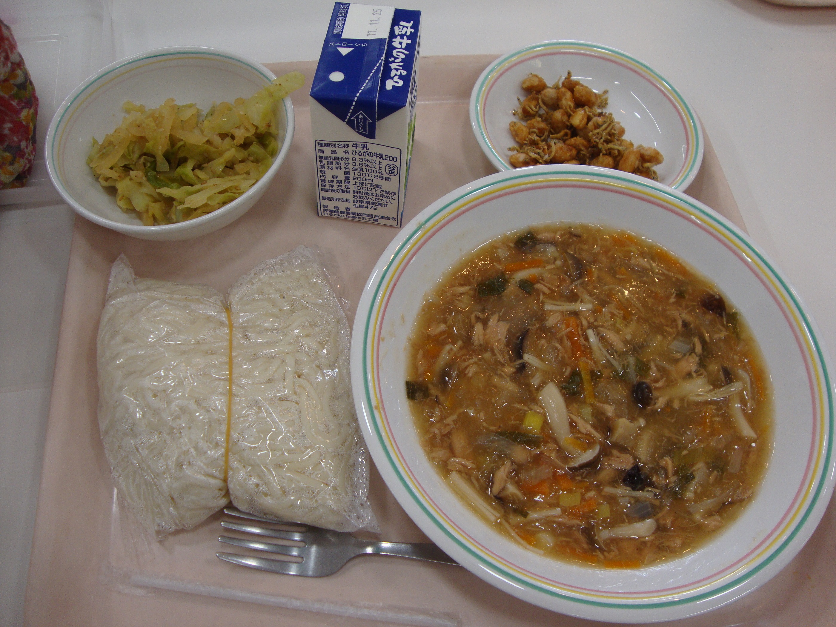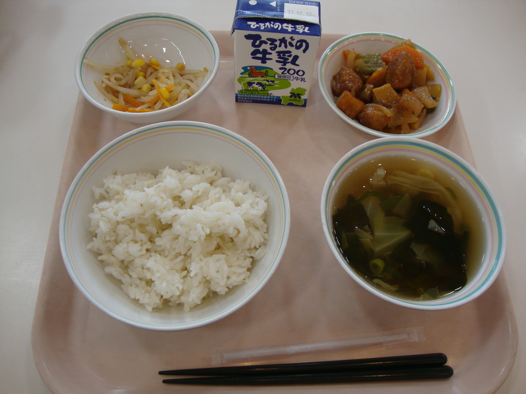 豚肉は、牛肉や鶏肉と比べるとビタミンB1が多いことが特徴です。ビタミンB1は、疲れをとる働きがあります。今日は、豚肉に下味をつけて油で揚げた後、砂糖・しょうゆ・みりん・酢・砂糖・酒のたれをからめました。しっかりとよくかんで食べてくださいね。