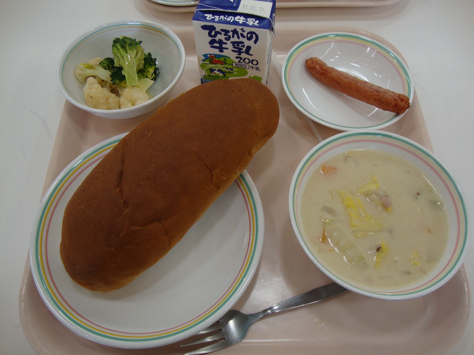 グラタンは手間のかかる料理です。それは、材料をゆでたり、炒めたり、焼いたりと、いろんな調理をしながら作っていくからです。さけや ほうれんそうをゆでておいたり、材料を釜の中で炒めながら小麦粉を入れて炒めていきます。牛乳を加えて、それをカップ1個1個に入れていきます。最後に粉チーズをふってオーブンで焼いていきます。焼きあがったら、温度がきちんと上がっているかを確認し、数えます。食べるのはあっという間かもしれませんが、調理員さんに感謝して味わって食べてくださいね。魚の骨に注意して食べてくださいね。