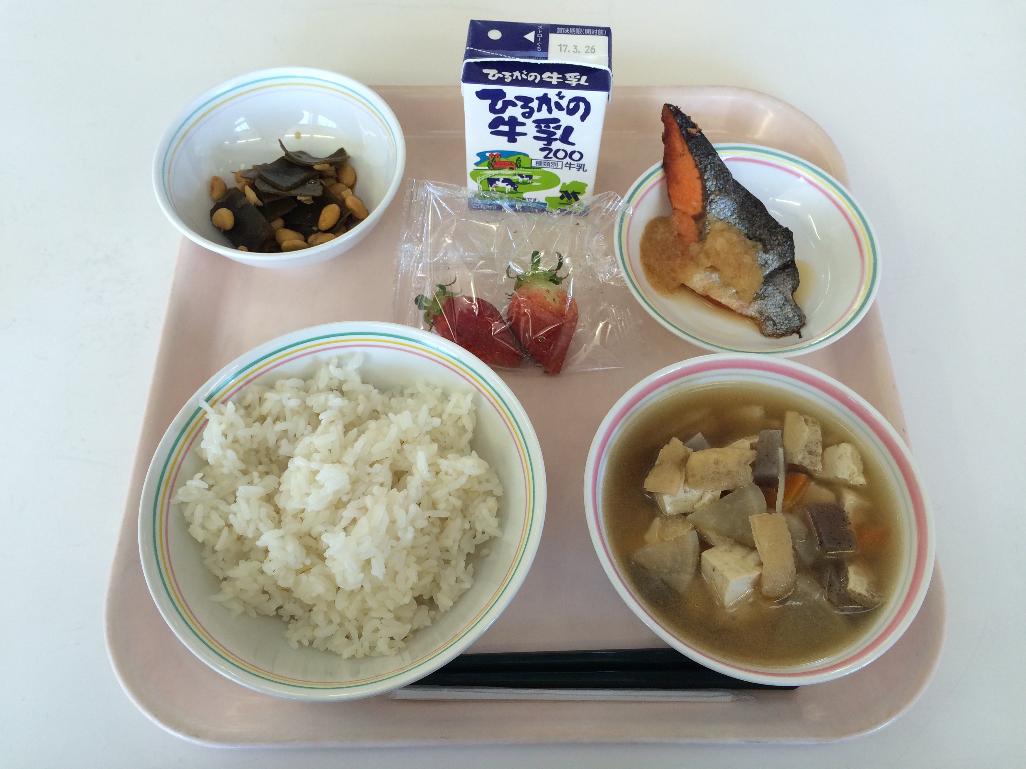 今日は、6年生のみなさんの卒業をお祝いした献立です。卒業おめでとうございます。