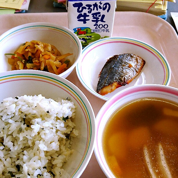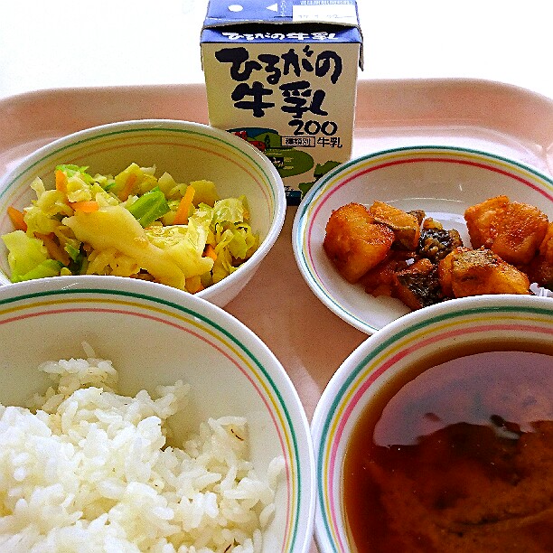 毎月19日は、「食育の日」です。山県市の給食では地元の食材や和食を出しています。今日は、給食の魚料理で人気の「サバのみそ煮」です。