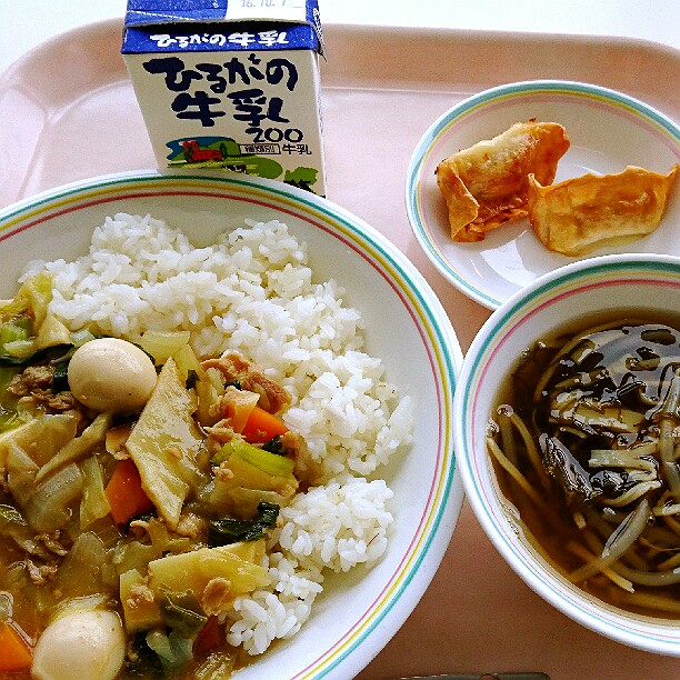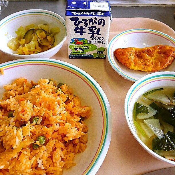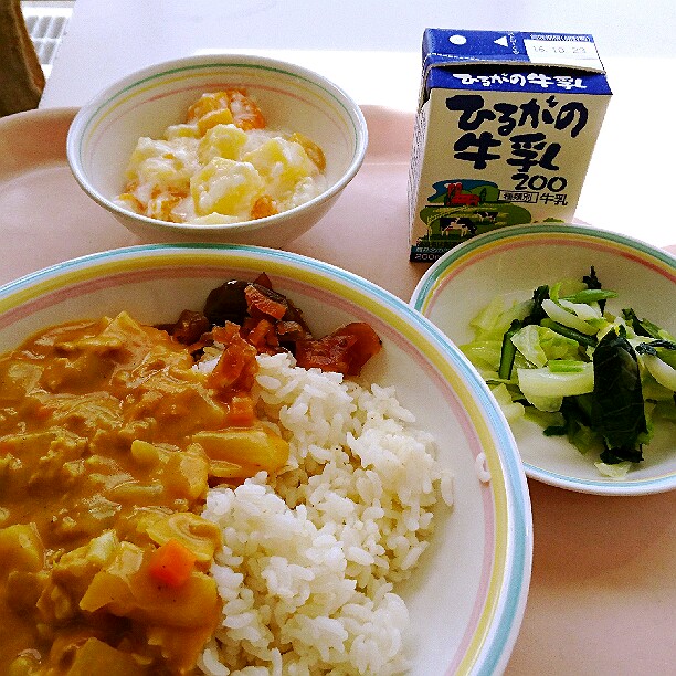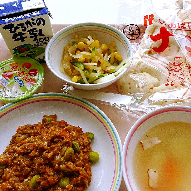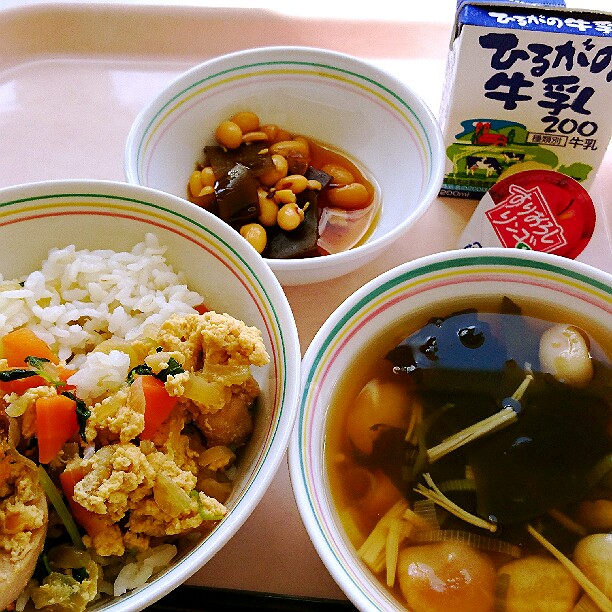 桑の木豆が収穫できるのは、この10月です。そのため、今日の給食では収穫したての生の桑の木豆を、さやごと使いました。桑の木豆は、収穫時期になると、緑色に赤紫のかすり模様ができるのが特徴です。残念ながら、ゆでることでこの鮮やかなかすり模様は薄くなってしまいます。みなさんも家庭の料理に取り入れてくださいね。