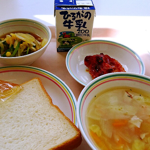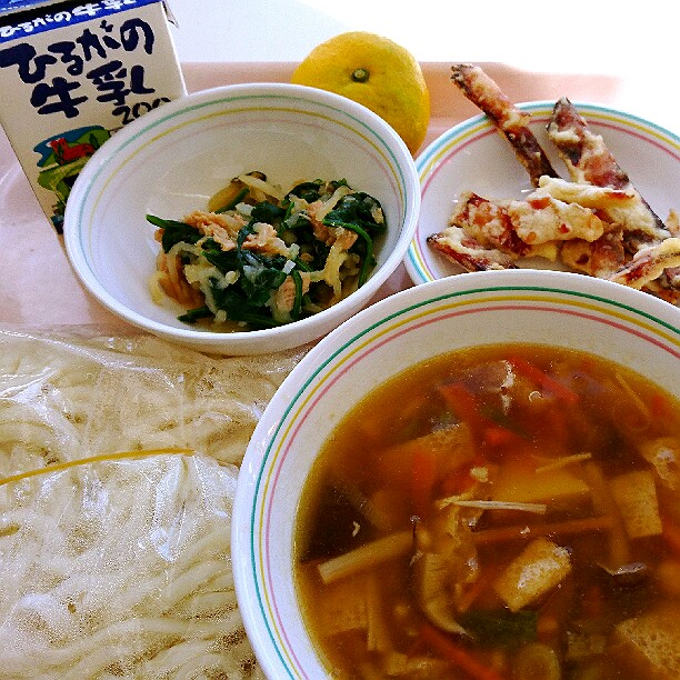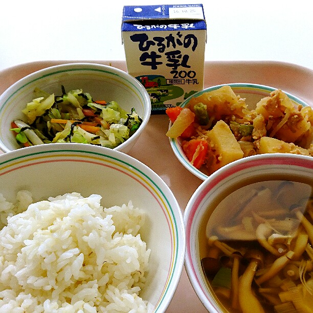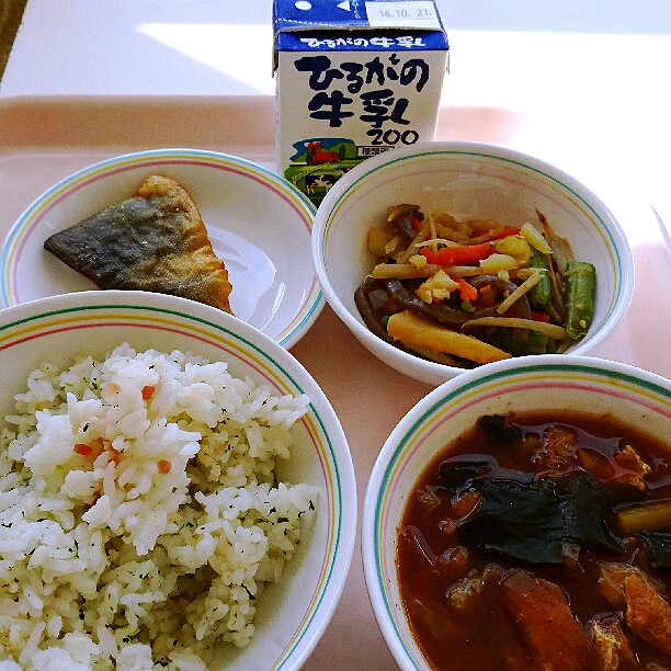 今日は、いい歯の日の献立です。骨ごと食べられる、ししゃもや根菜類を取り入れました。1口につき30回を目標に、よくかんで食べてくださいね。