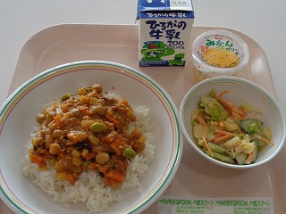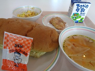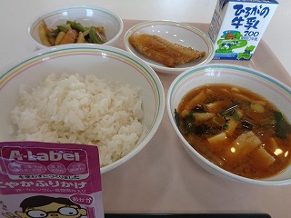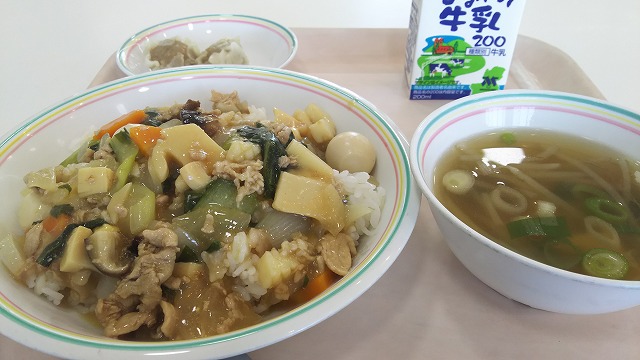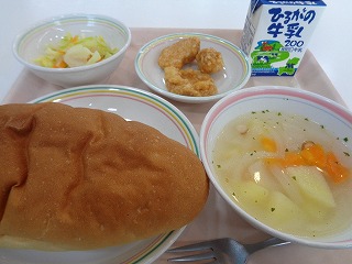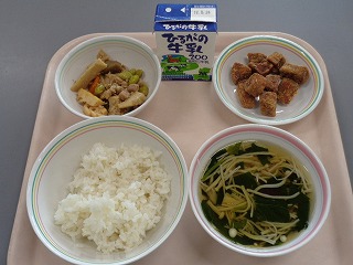 また、今日の給食の魚はかつおです。春が旬の魚です。かつお節にもなる魚ですので、日本人には欠かせない魚です。今日は、かつおにしょうゆ、酒で下味をつけて、片栗粉、米粉をまぶして油で揚げました。しっかりと味わってくださいね。