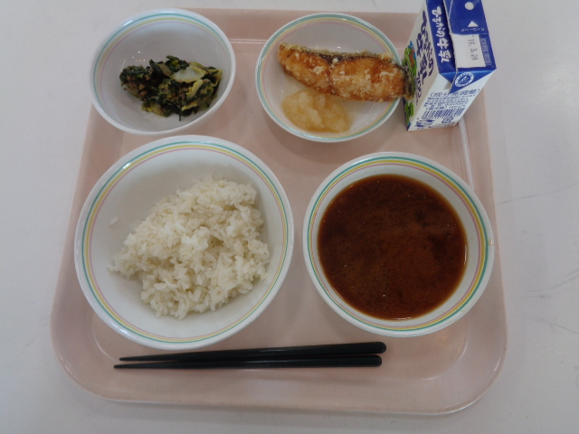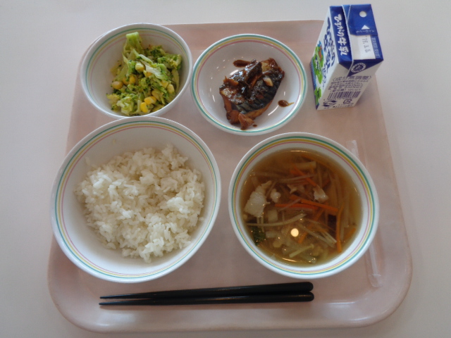 今日は新メニュー「鯖のホイル包み焼き」の話です。この鯖のホイル包み焼きは、「魚の苦手な人でも、おいしく食べられるように」と学校給食用に開発されたものです。魚が苦手な人の、苦手になった理由の上位2つ「骨を取ることが苦手」「魚のにおいが苦手」 この2つ理由を、クリアできるように考えられています。アルミホイルに包んで、しっかりと加熱してあるため、骨まで柔らかくなって丸ごと食べることができます。また、甘辛い味噌味に仕上げてあるので、魚のにおいも気になりにくいです。ごはんによく合う味付けです。鯖が苦手な人も、ぜひ食べてみてください。今日の魚は骨ごと食べられますよ。