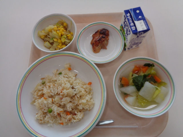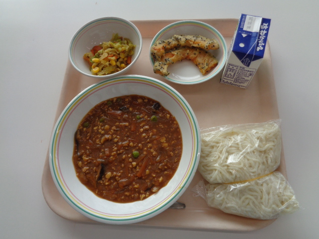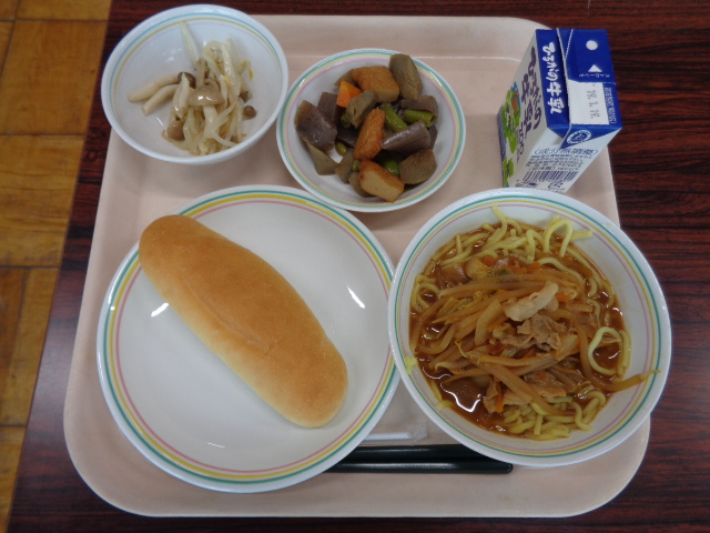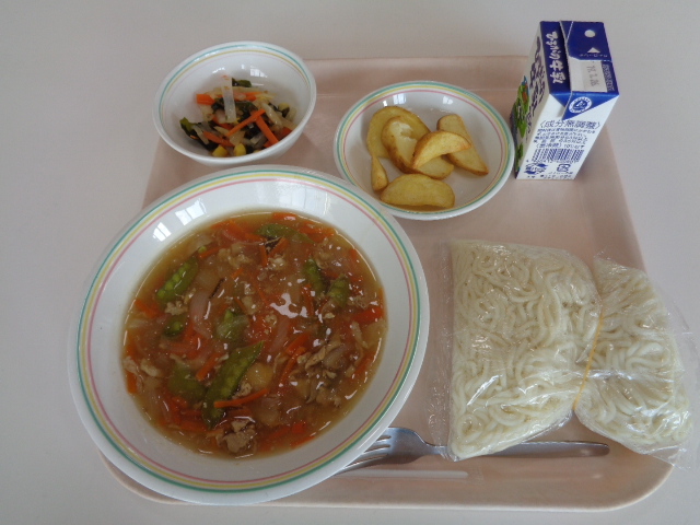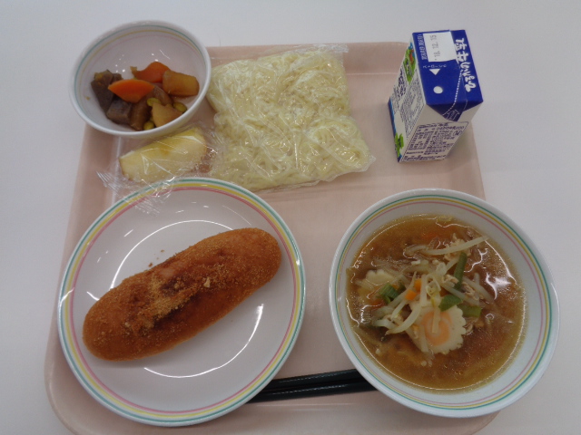ラーメンは、昔からうどんやそばと並んで、人気のある料理です。1958年には初めてのインスタント麺である「チキンラーメン」が誕生しています。世界で初めてのインスタント麺ですが、その誕生には、戦後の日本の状況が背景にあります。戦後間もない大阪で、1杯のラーメンを食べるために何十人も行列を作って並んでいたそうです。その姿に衝撃を受け、すべての人に十分な食料があれば、世界に平和が訪れると考え、インスタントラーメンが開発されました。わたしたちが普段、食べているラーメンですが、様々な人たちの思いでうみ出されています。残さず食べてくださいね。